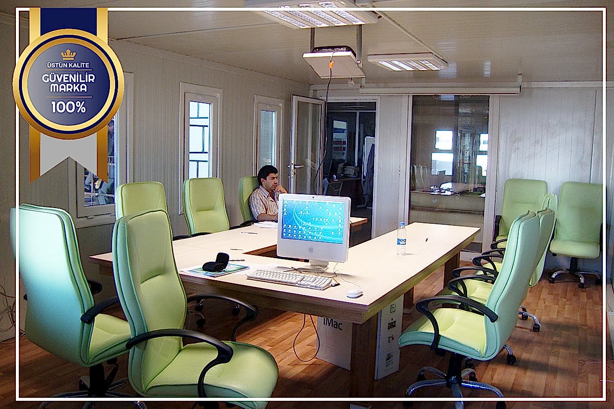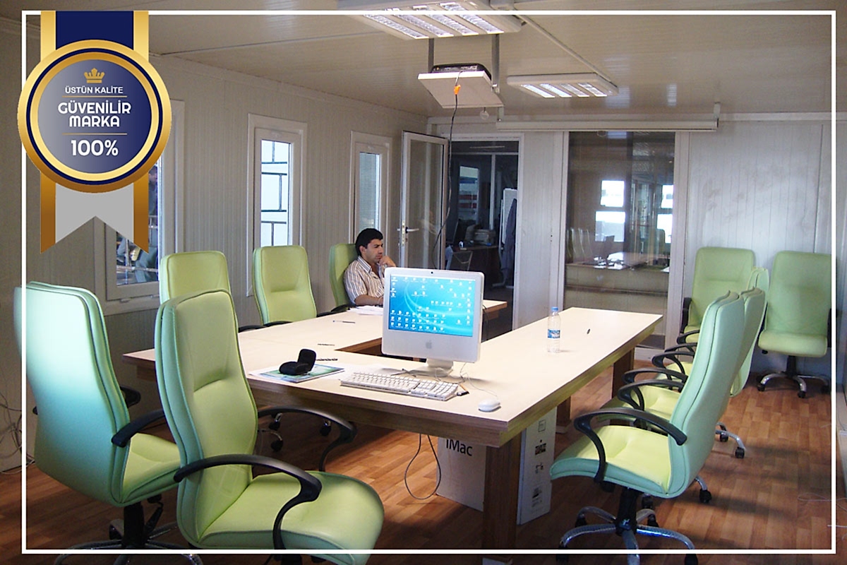 Konteyner alt ve üst şase ile birlikte duvar direklerinde kullanılan çelik metallerin hiçbir birleşiminde kaynak kullanılmamaktadır. Metal birleşimleri cıvata somunlu sistemle gerçekleştirilmekte sandviç panel ile metal birleşimi alanlarına özel EPDM conta kullanılmaktadır. Üretim sonrası kullanım yerine sevk edilen ofis yapıları aynı gün kullanıma sunulmaktadır. Katlı ve birleşimli yapıların kurulumuna Karmod uzmanlarınca sevkin tamamlandığı gün başlanmaktadır. Proje büyüklüğüne göre kurulum aynı gün veya birkaç gün içerisinde tamamlanarak kullanımınıza sunulmaktadır. Yeni binanıza kısa sürede taşınabilmeniz için konteyner ofis mobilyaları seçiminizi geç kalmadan yapmanızı öneririz. Çünkü Karmod uzmanlığıyla konteyner ofis binanız kısa sürede hazırlanacak.