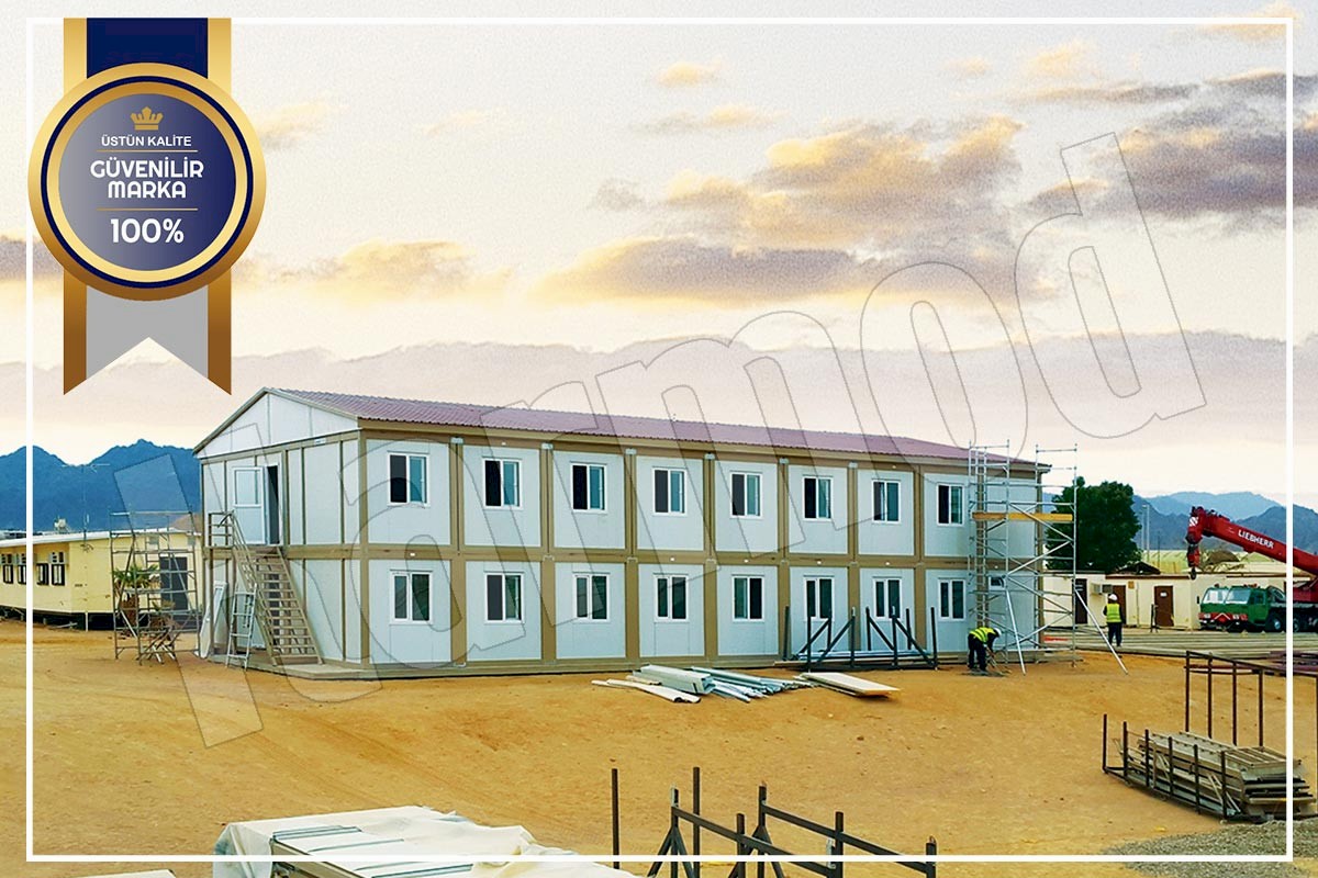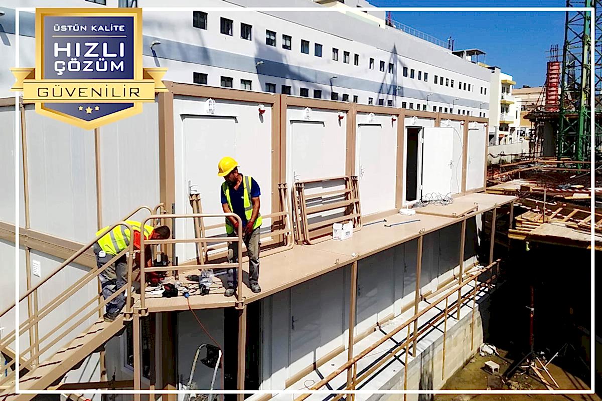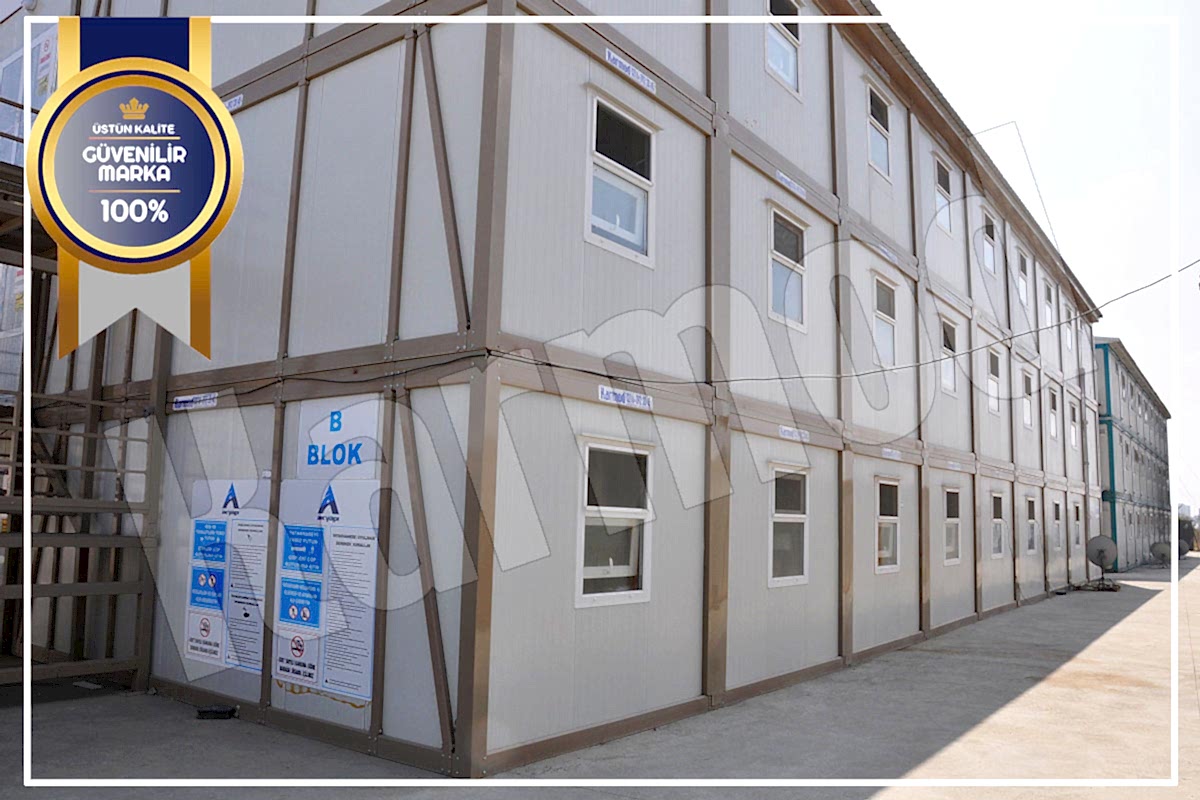 Yatay yerleşim açısından mekan sorunu bulunmayan projelerin işçi kamp yapılarının hazırlanmasında standart şantiye konteyner modelleri kullanılmaktadır. Standart model kullanımıyla yan yana ünite dizilimiyle işçi yatakhaneleriyle beraber maksimum genişlikte yemekhane ve dinlenme salonları hazırlanabilmektedir. Dar sahaya sahip projeler için birleşimli katlı sistem şantiye konteyner modelleri önerilmektedir. Birleşimli katlı sistemle dört kata kadar büyük metrajlı yapılar hazırlanarak şantiyelerdeki işçilerin kullanımına sunulmaktadır. Katlı sistemlerde orta alanda yapı boyunca bir koridorla sağlı sollu yatakhane koğuş odaları yer almaktadır. Koridorun iki ucunda konaklayacak personel sayısına göre wc ve duş ünitelerine yer verilmektedir.