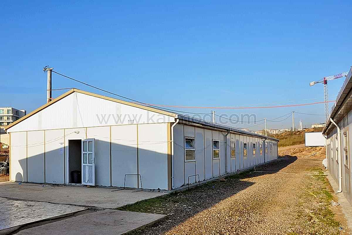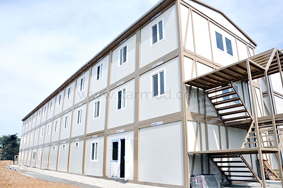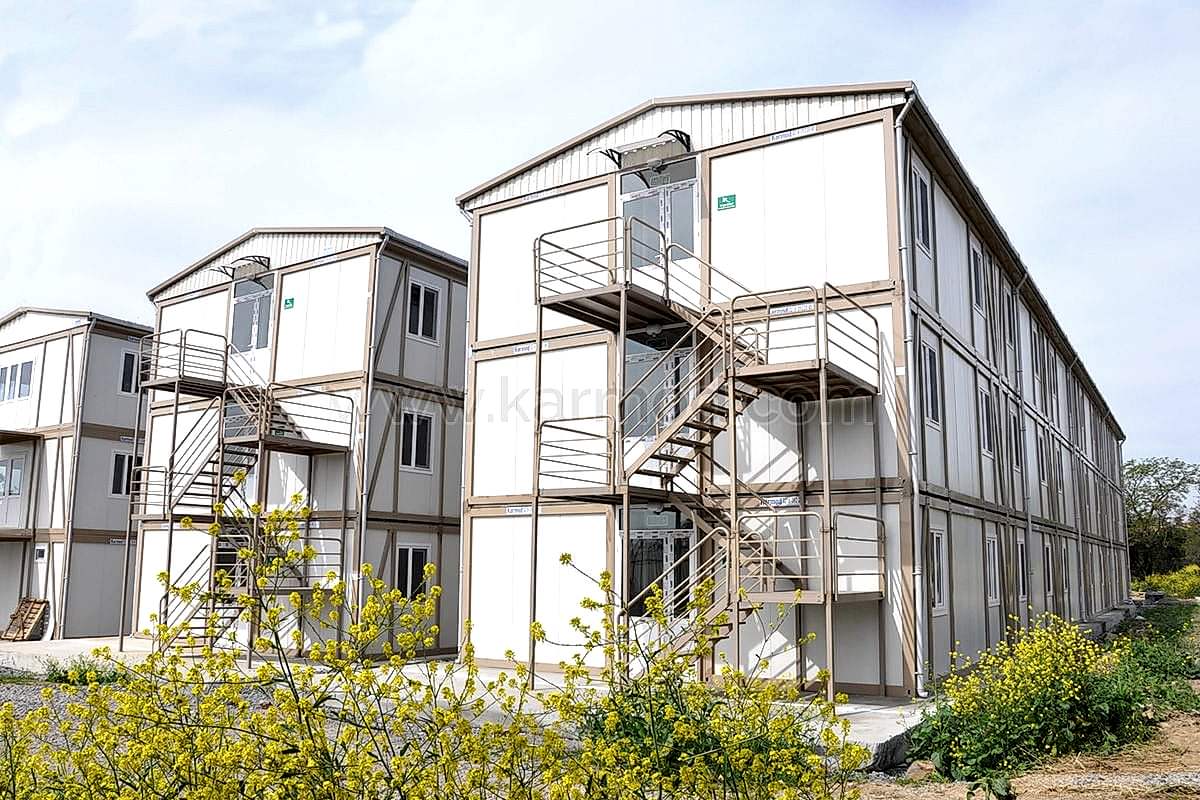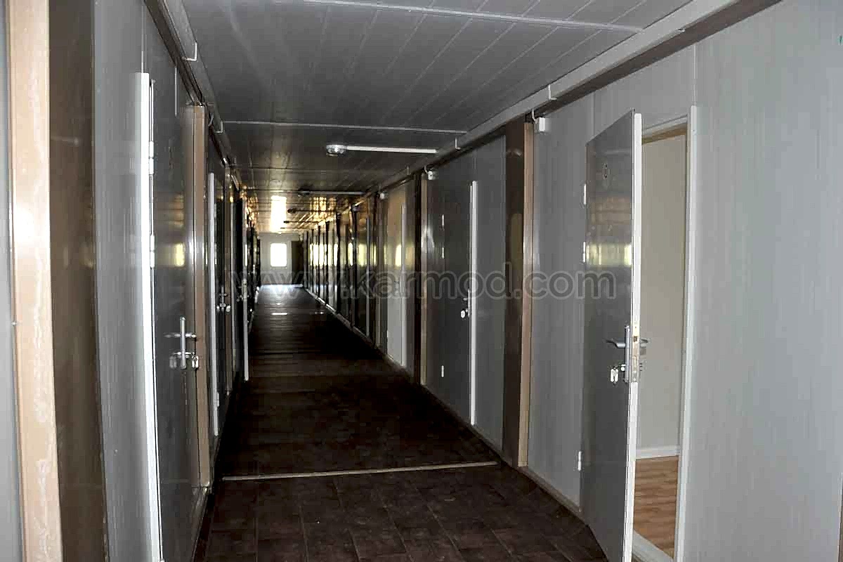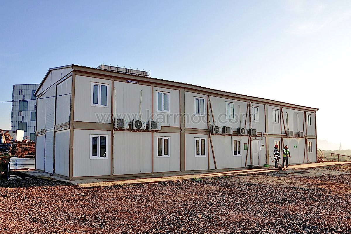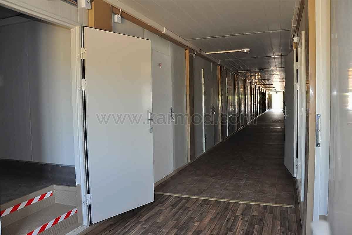 Karmod Prefabrik Yapı Teknolojileri olarak farklı alanlar için 2,4x6 ya da 3x7 ölçülerinde standart üretim sahip yatakhane konteyner ile özel ölçeklendirilebilen birleşimli yatakhane konteyner modeli üretmekteyiz. Kişi güvenliğine öncelik vererek ürünlerimizi kaliteli malzemelerden imal etmekteyiz. Değişen iklim koşullarına, sıcağa ve soğuya dayanıklı ürünler yapmaktayız. Dilerseniz yatakhaneye çatı opsiyonu ekleyebiliriz. Konteyner yatakhane birkaç kez sökülerek tekrar montaj edilebilir. Bu özelliği sayesinde bulunduğu yerden başka yerlere taşımak son derece kolaydır. Estetik görünüme sahip olması için dış ve iç dekorasyonda değişiklikler yapılabilir.