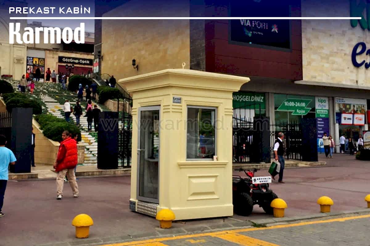 Diğer bir modüler kabin modeli de prekast sistemine sahip kabinler. 150x150 ve 150x270 ölçüleriyle imal ediliyor. Renkli çamları, antrasit pencere sistemi ve özel çatısıyla konulduğu yerleri kalite ile buluşturuyor. Şehir mobilyalarının peyzaja kattığı değer ne ise prekast kabin de konulduğu yere modern görünümüyle değer kazandırıyor.