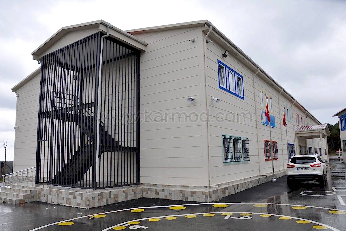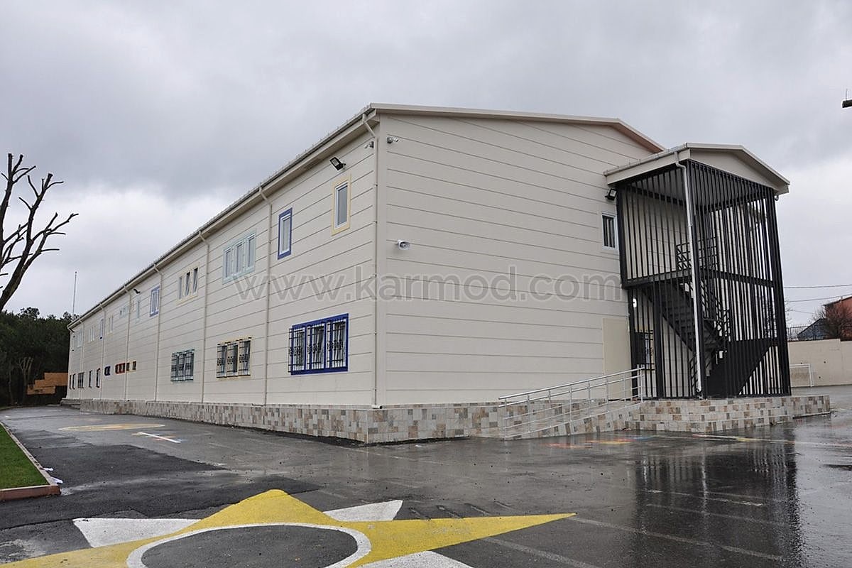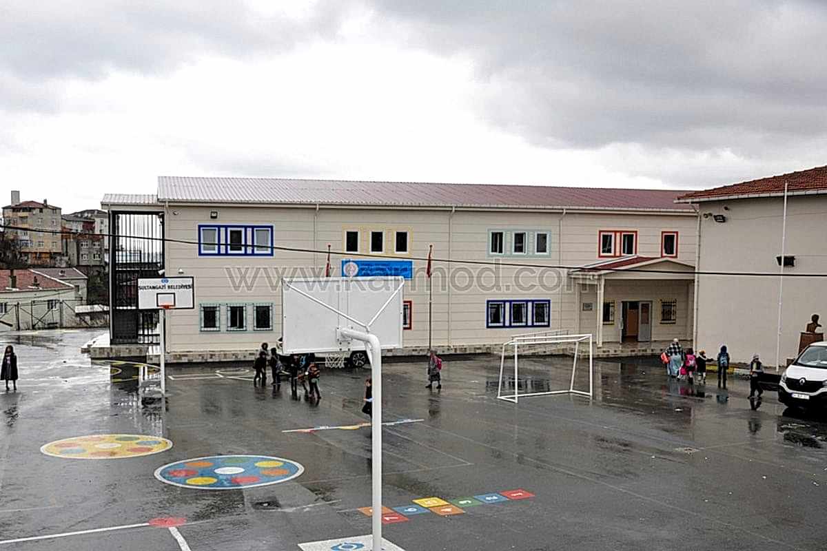 İstanbul’un Sultangazi ilçesi Yayla Mahallesinde inşa edilen bu okulda öğrenci ve öğretmenler deprem güvenliği yüksek bir binada eğitim görme coşkusunu yaşamaya başladılar. Yüksek yapı güvenliğine sahip okul binası Karmod uzmanlığıyla çelik konstrüksiyon sistemiyle projelendirildi. İyi organizasyonuyla yeni nesil yapı teknolojileri kullanılarak modern tesislerde ön üretimi gerçekleştirilen bin 960 metrekare büyüklükteki okul binası kurulum yapılmak üzere okul projesinin gerçekleştirileceği sahaya sevk edildi. Teknik ofis ve saha kurulum ekiplerimizin koordinasyonuyla 19 derslikli çelik okul binası 72 gün gibi rekor bir sürede iki katlı olarak kullanıma hazır inşa edildi.